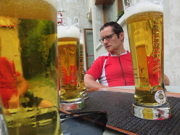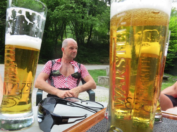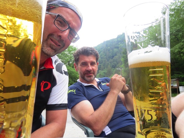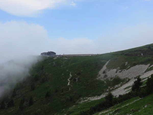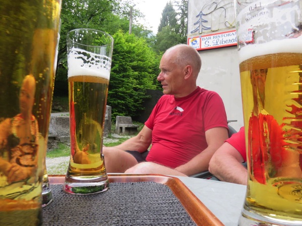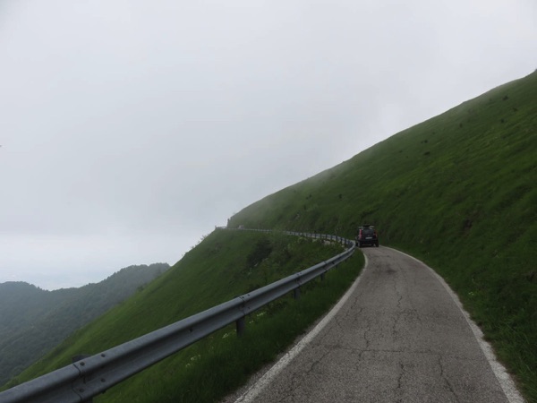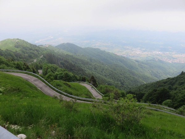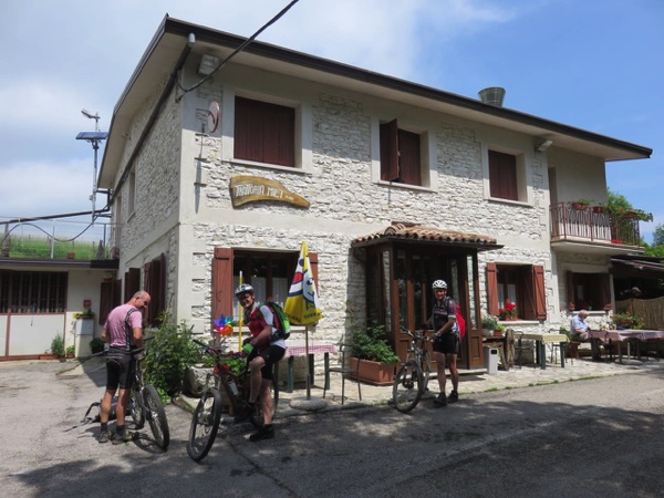Wir verlieren uns ein bisschen aus den Augen, nehmen unterschiedliche Varianten hinauf zum Monte Tomba und treffen uns dort bei einer urigen Trattoria auf ein zweites Frühstück. Mühsam geht es auf schönen Straßen weiter, Günther verliert abermals den Anschluss, wählt aber als Einziger die Originalstrecke hinauf zum Monte Grappa, während der Rest des Pelotons die einfache Variante über eine mühelose Asphaltstraße nimmt. Über die damit einhergehenden Auswirkungen auf die heurige Gesamtwertung braucht an dieser Stelle nicht großartig debattiert zu werden.