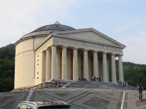 Als wir wieder Asphalt unter die Reifen bekommen nehmen wir ein gemütliches Bier zu uns und erholen uns von den Strapazen der Abfahrt. Im Tal angekommen fahren wir teils über Straßen, Schotter oder schöne Wegerl zurück Richtung Valdobbiadene. Wir machen ein bisschen auf Kultur und besichtigen den beeindruckenden Tempio Canoviano, bevor es dann mit dem Franz‘schen Windschatten-Schnellzug nach Hause geht. Er kennt wieder einmal kein Pardon und reisst das Fahrerfeld nach Belieben auseinander.