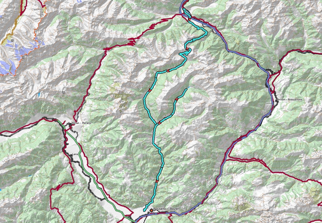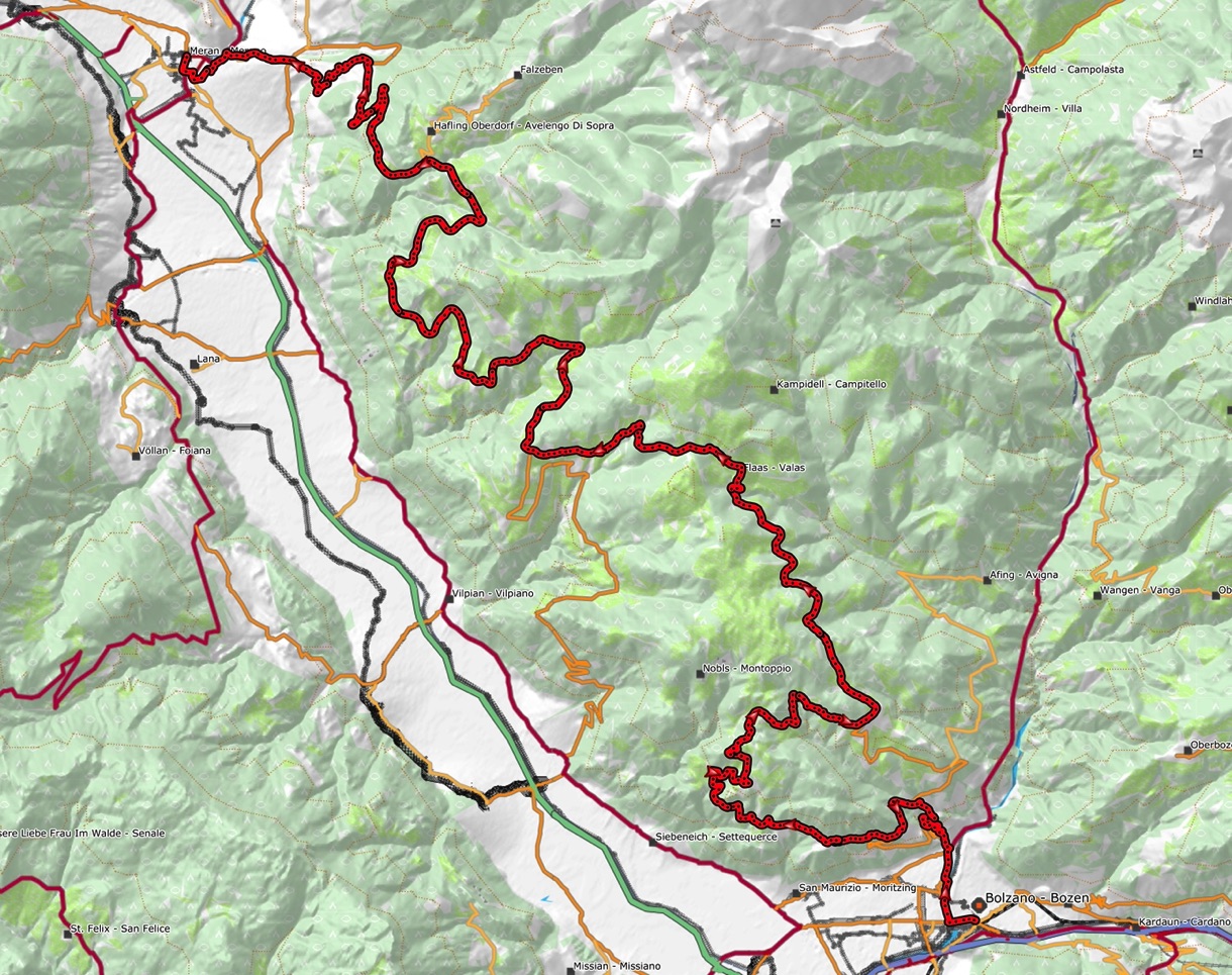 Tag 1, Bozen - Flaaser Höhe - Meran, 58 km, 1850 Hm