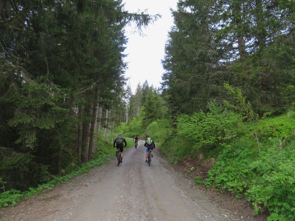 Auf schönen Waldwegen geht es weiter hinunter Richtung Tamsweg, auch hier immer wieder unterbrochen von diversen Fotostopps. Gegen 17:00 kommen wir in Tamsweg an, flanieren kurz über den Hauptplatz und waschen dann beim Wohnhaus von Herwig die Räder ab. Dabei wird freilich neugierig in die Garagen gespechtelt wo zwei mehr oder minder betriebsbereite Unimogs auf die nächste Ausfahrt warten. Abends gibt es Unmengen von leckerer Pasta con Ragu di Guanciale e Salsiccia, genau das Richtige in unserem Zustand.