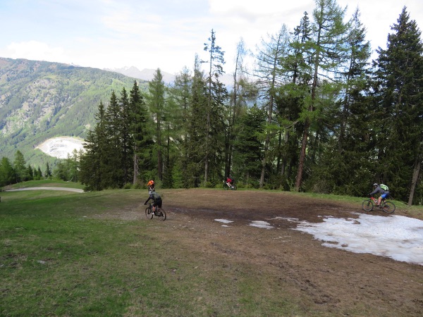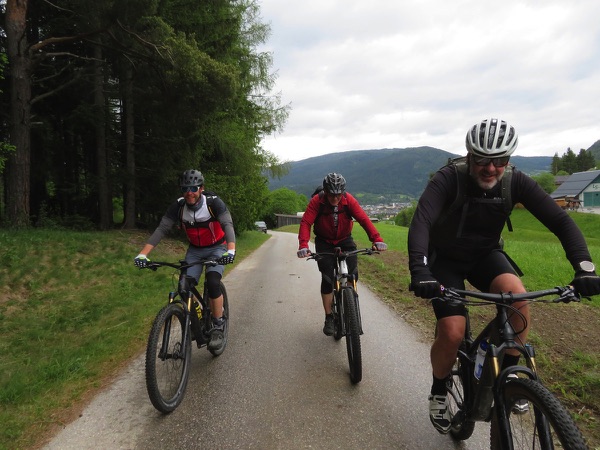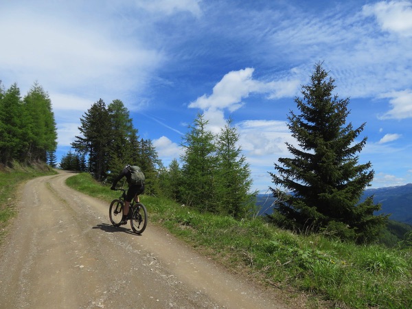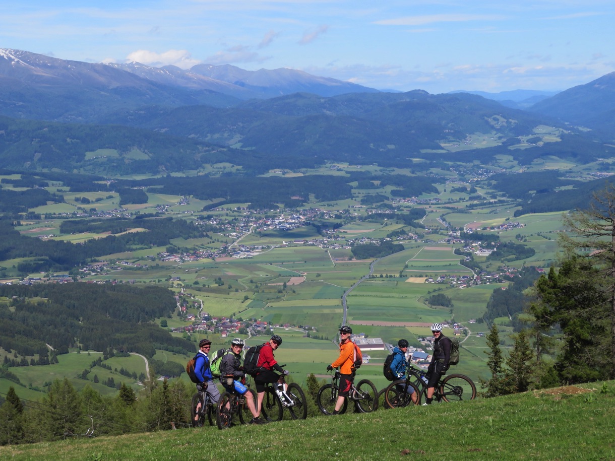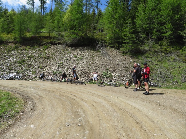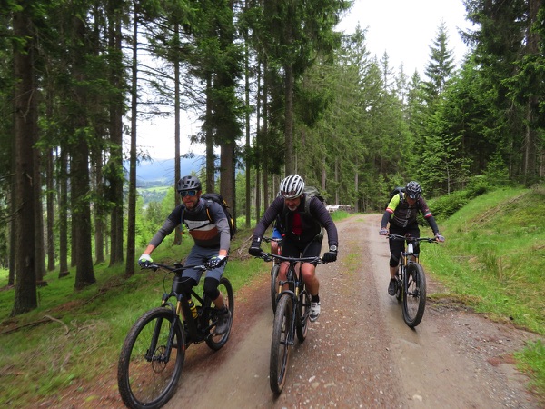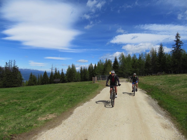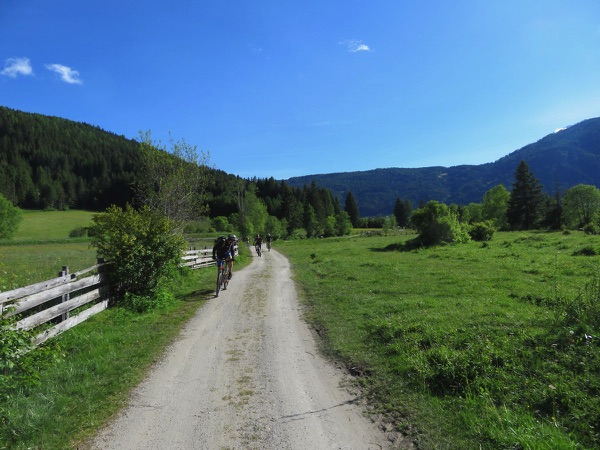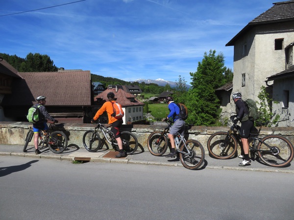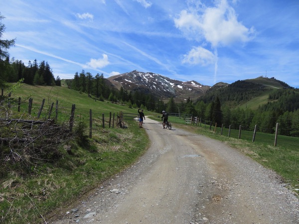 Frühstück wieder ab 08:00 mit gutem Lungauer Gebäck, Hemeneks & Co. Das Wetter wehrt sich noch ein bisschen gegen strahlenden Sonnenschein, wir rollen dennoch durch Tamsweg und auf schön ausgebauten Schotterstraßen geht es dann gleich einmal hinauf Richtung Mitterberg, welche im oberen Teil von einem gut begehbaren steilen Wanderweg gekrönt wird. Rasant geht es danach direttissima hinunter nach Neuseß.