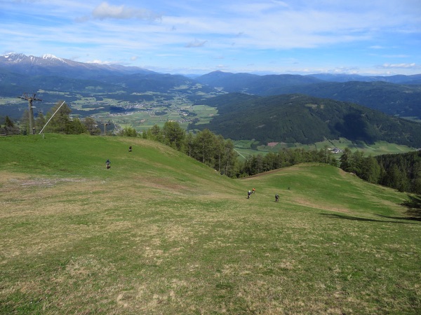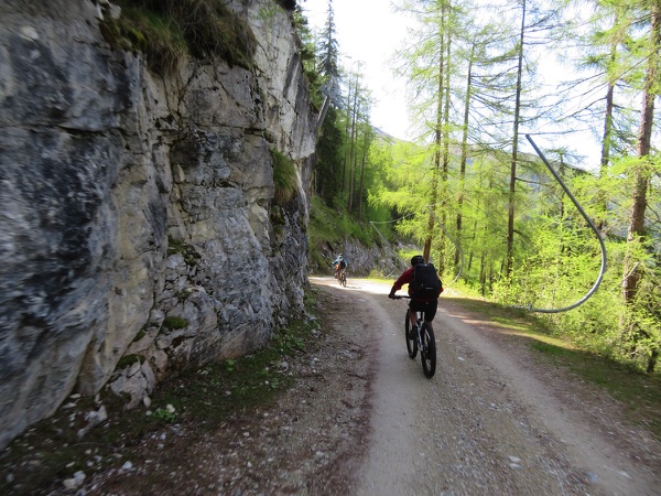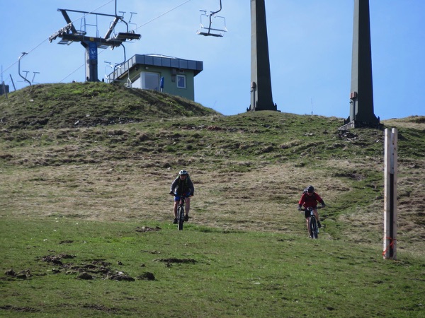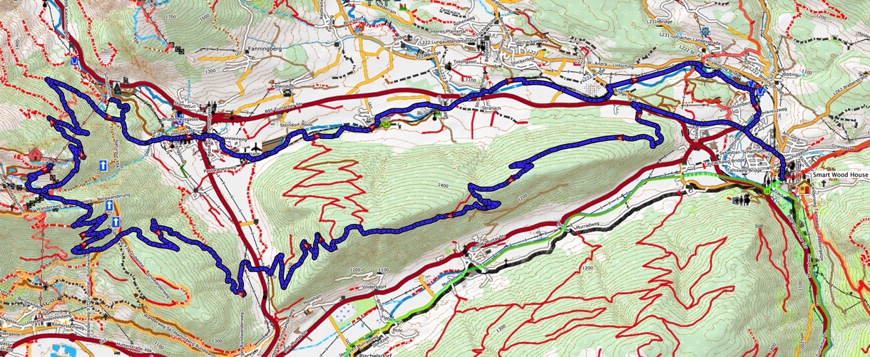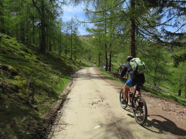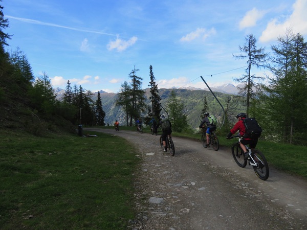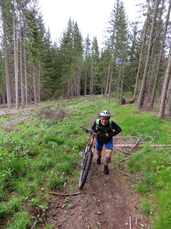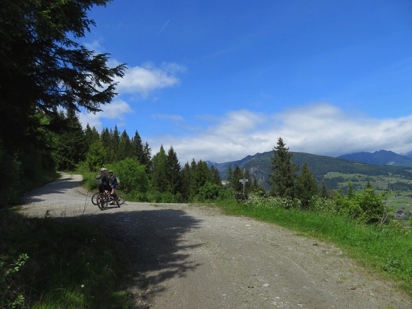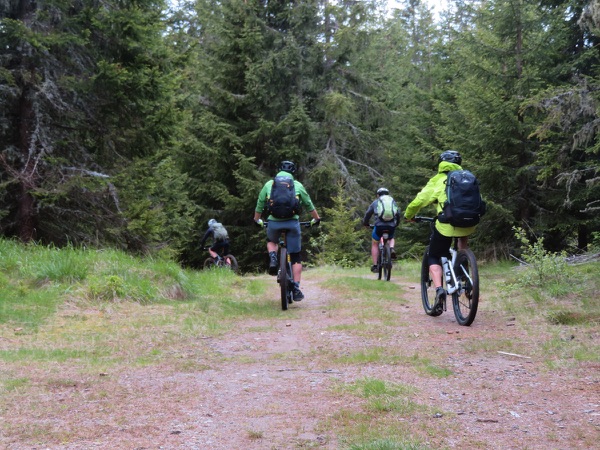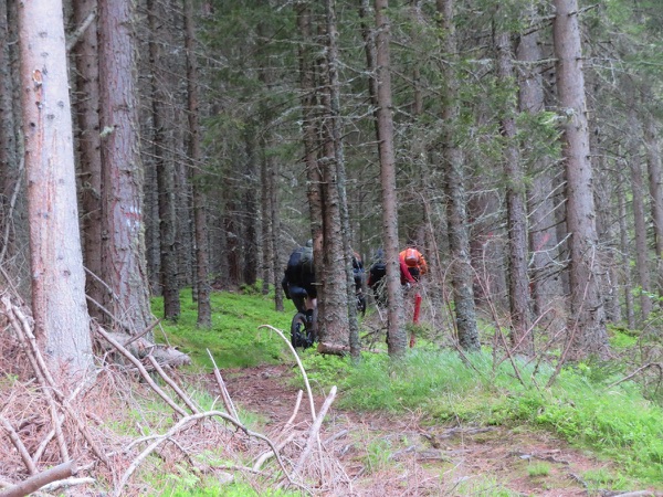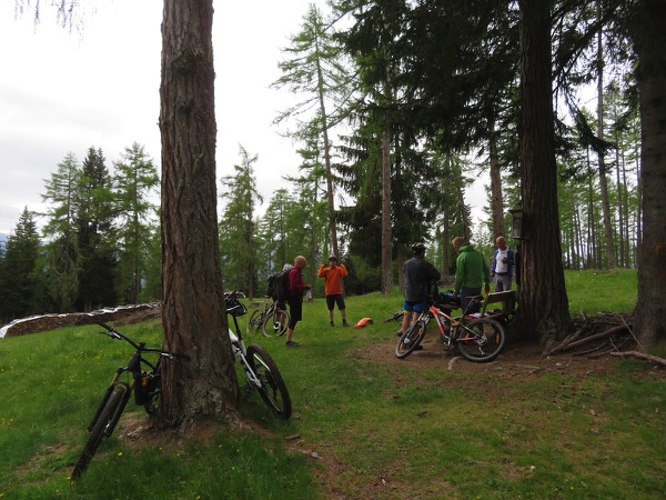 Frühstück wieder ab 08:00 mit gutem Lungauer Gebäck, Hemeneks & Co. Das Wetter wehrt sich noch ein bisschen gegen strahlenden Sonnenschein, wir rollen dennoch durch Tamsweg und auf schön ausgebauten Schotterstraßen geht es dann gleich einmal hinauf Richtung Mitterberg, welche im oberen Teil von einem gut begehbaren steilen Wanderweg gekrönt wird. Rasant geht es danach direttissima hinunter nach Neuseß.