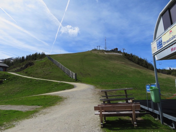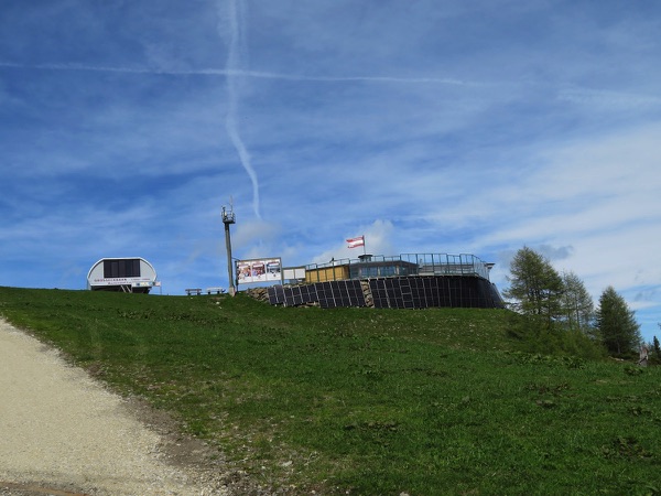 Der finale sprichwörtliche Aufstieg hinauf zur Speiereckhütte wir nur vom leistungsstarken Peloton mühelos gemeistert, das Gruppetto (oder wie man auch sagt: der Grüppetto) macht einen dringend notwendigen Stopp bei der etwas darunter liegenden Panoramaalm- Liftstation.