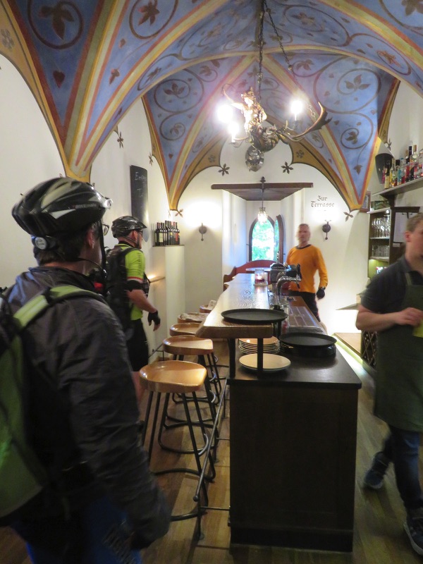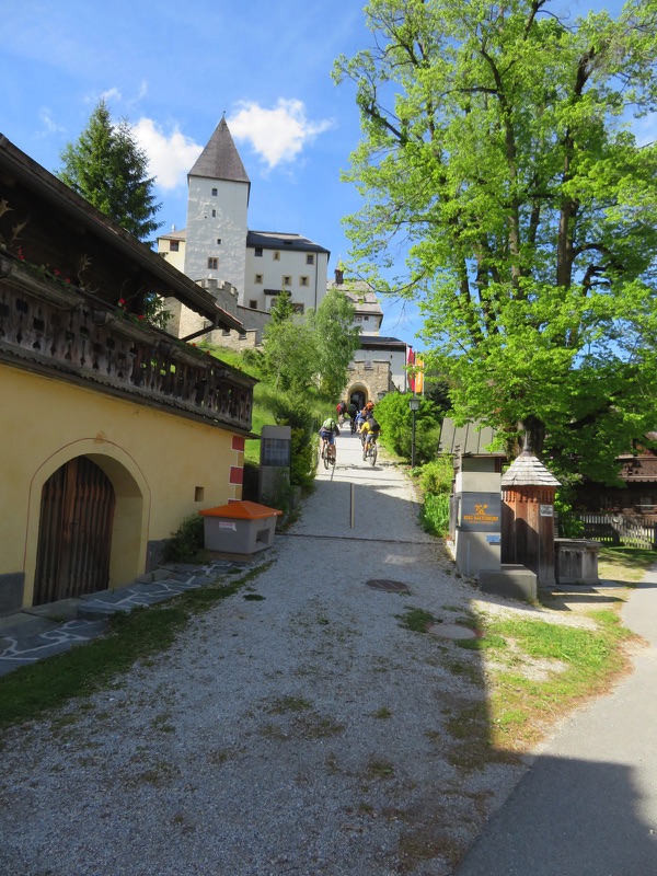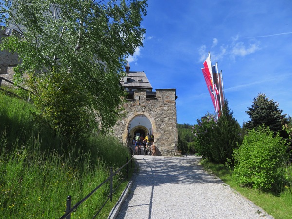 Die schwungvolle Abfahrt über die steilen Schipisten sind schnell, bremsenvernichtend und machen richtig Spaß. Rasch sind wir 800 Höhenmeter später unten in Mauterndorf und flanieren durch die mittelalterliche Stadt mit ihrer beeindruckenden Burganlage. Und auch diese Bergwertung können wir freilich nicht auslassen, wir besuchen die Burgschenke auf einen kleinen Umtrunk und genießen den ritterlichen Ausblick.