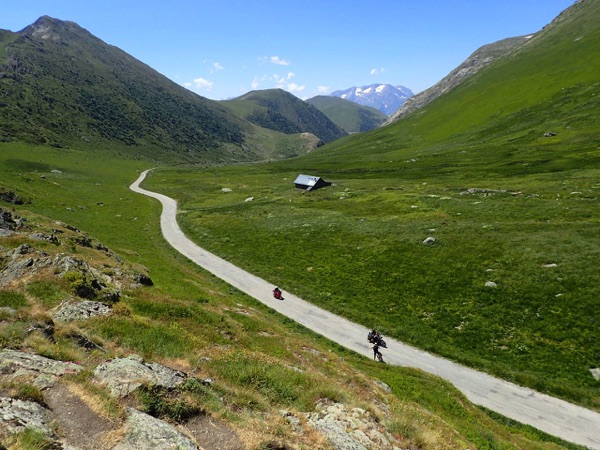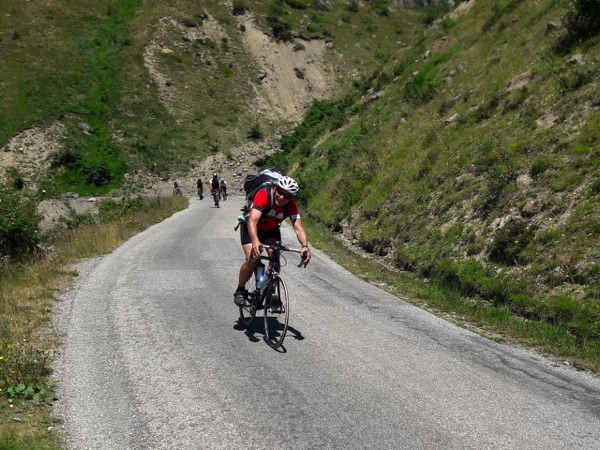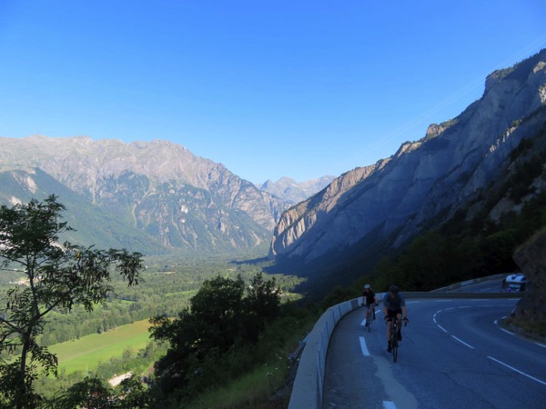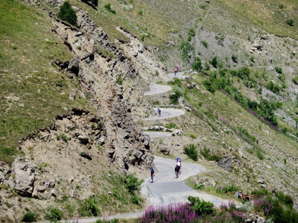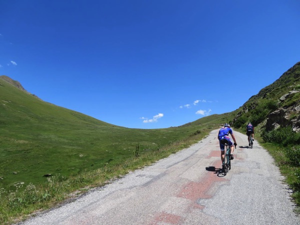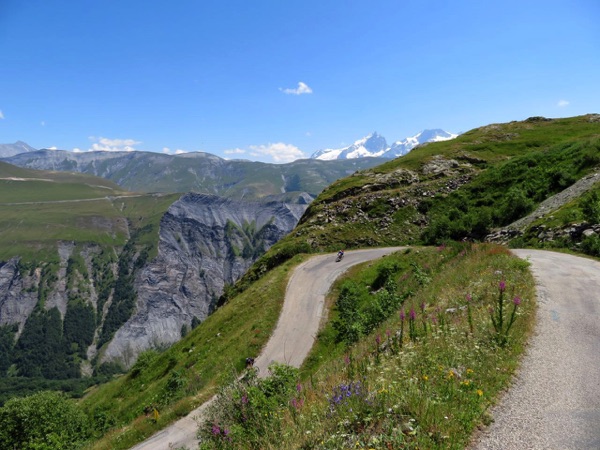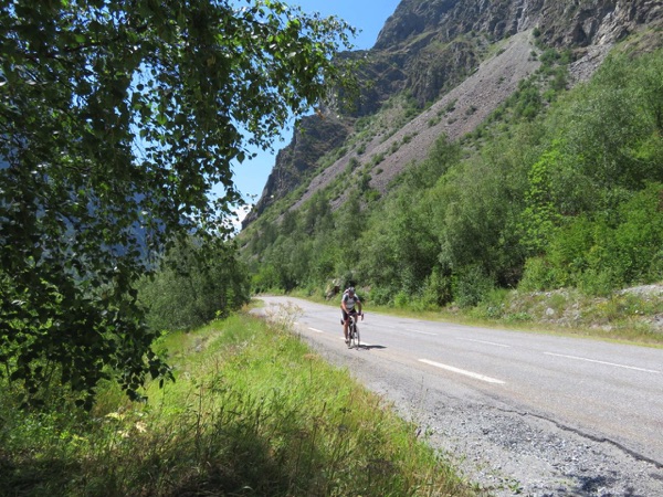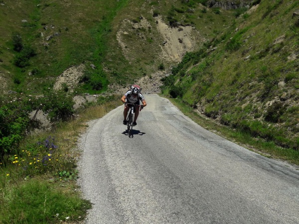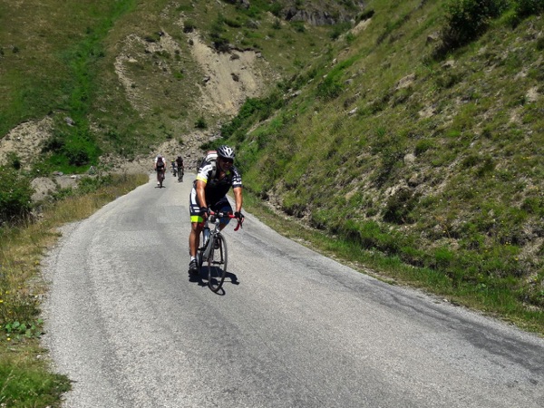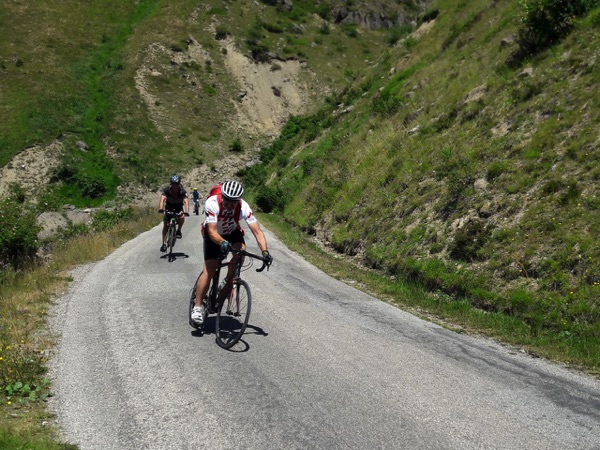 Die folgende Fahrt hinüber zum Col de Sarenne ist einmalig - anfangs einmalig schön, danach einmalig anstrengend. Die völlig abseits der üblichen Verkehrsrouten gelegene Straße windet sich durch eine grandiose Landschaft, der Schlußanstieg hinauf zum Pass fordert aber den vollen Einsatz aller Beteiligten.