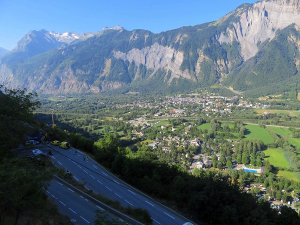 Frühstück um 07:30, um 08:30 fahren wir die Rampe zum Stausee wieder hinauf und nehmen eine kleine Schupfe hinüber nach Bourgh D‘Oisans. Gemütlich rollen wir dem belebten Startort für die Fahrt hinauf nach Alpe d‘Huez entgegen. Die Vorbereitungen für die morgige Durchfahrt des ganzen Tour de France Trosses sind im Laufen, Straßen werden gesperrt, Umleitungen eingerichtet und die Marketender bauen ihre Buden für den Ansturm der zehntausenden Zuseher auf. Und dann gehen wir es einfach an, rauf nach Alpe d‘Huez!
