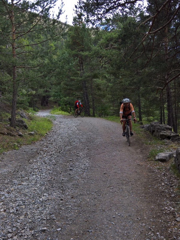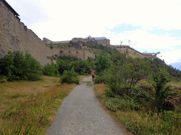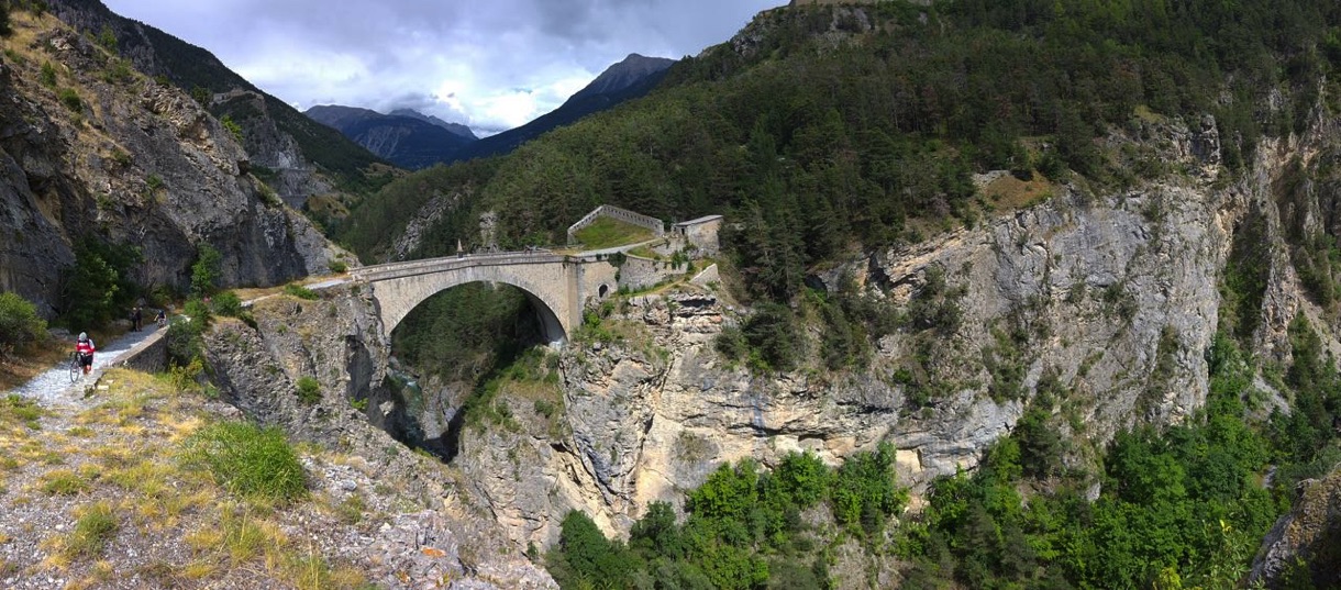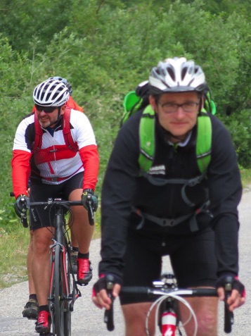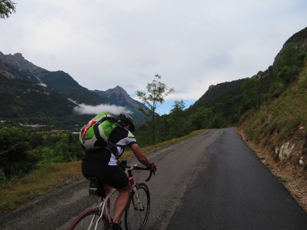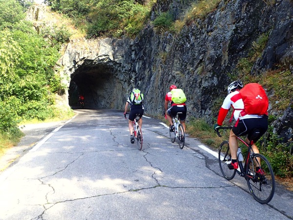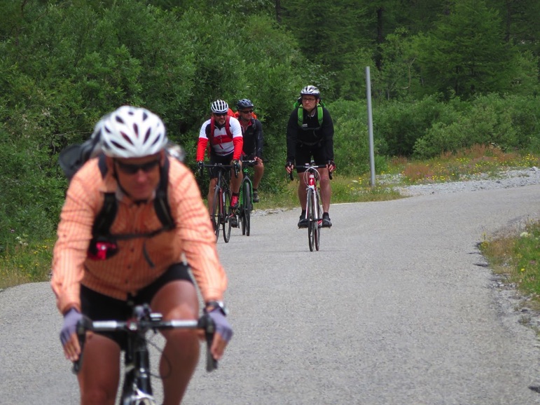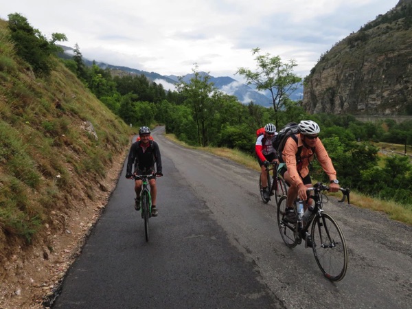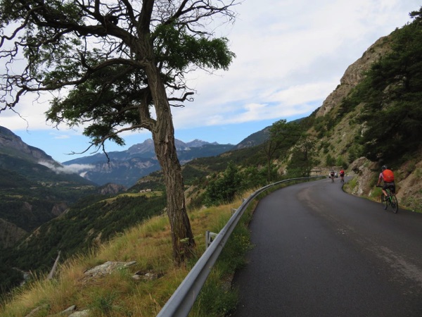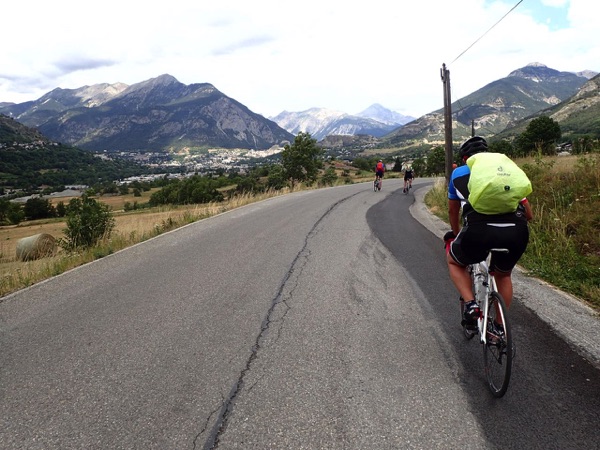 Auf selbiger Straße geht es dann in genussvollem Rollen hinunter ins Tal. Wir queren nach einigen Attacken auf einem kurzen Gegenstich wieder die schöne Traverse mit herrlichem Ausblick hinunter ins Tal. Unten angekommen wechseln wir die Talseite und fahren auf ruhigen Straßen zurück Richtung Briancon.