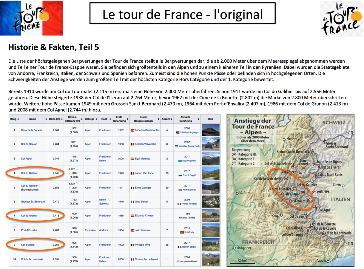 Nur ein paar der Klassiker der Tour de France, ein erstes Hineinschnuppern quasi...