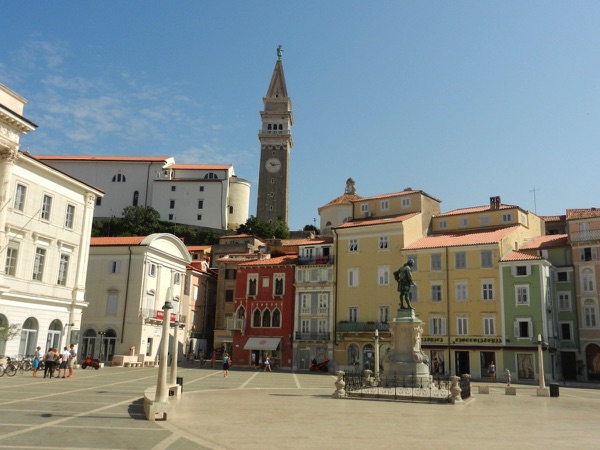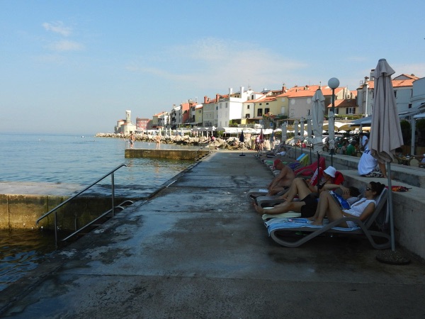 Den nächsten Tag verbringen wir mit kleinen Ausflügen, Flanieren durch Piran und Baden am Strand.