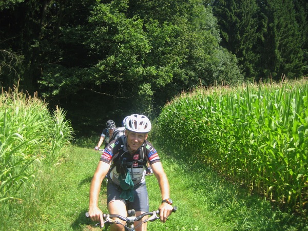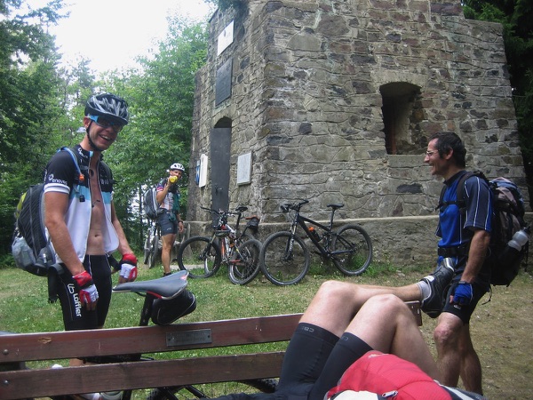 Wir nehmen also die erste Hürde Schloßberg locker flockig und bringen unseren Kreislauf gleich mal so richtig in Schwung. Kurz darauf die erste Tragepassage bergab, die Tour winkt mit einem ersten Zaunpfahl.