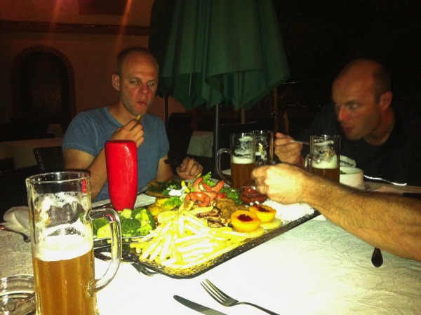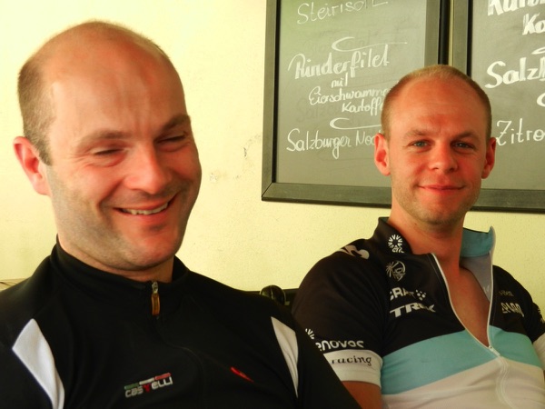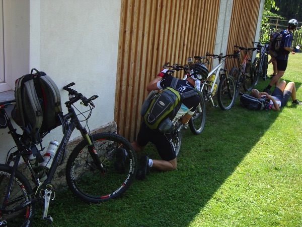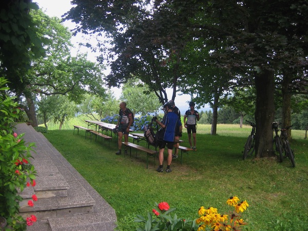 Nach einem brutalen Verkofferer in der Nähe von Limberg erholen wir uns beim Gasthaus Hochmasser im Schatten eines Baumes. Zu unserer Ehrenrettung können wir sagen dass es sich um eine E6 Kontrollstelle handelt. Es ist inzwischen spät geworden, und die nahende Dunkelheit dient uns als willkommene Ausrede, denn Rest der Strecke ein bisschen abzukürzen und auf der Bundesstraße hinunter nach Eibiswald zu rollen.