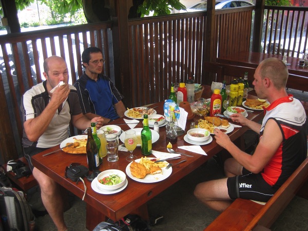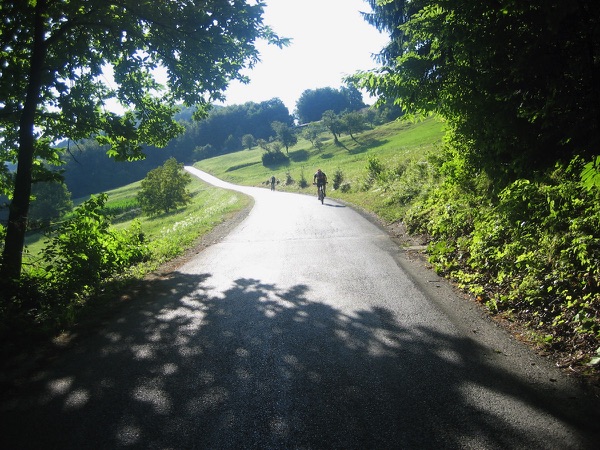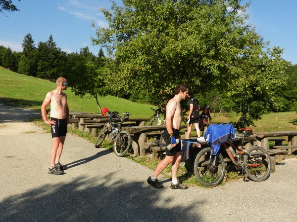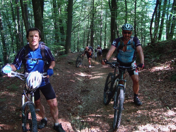 Die Weiterfahrt hinüber zur Warte ist abwechslungsreich aber heiß, die traumhaft lange Genussabfahrt hinunter nach Grosuplje stimmt uns auf das nun folgende Mittagessen ein - nach Wiener Schnitzel und Bier folgt dann wenig überraschend Suppenkoma und großes Leiden!