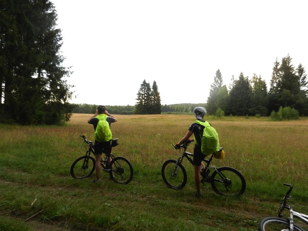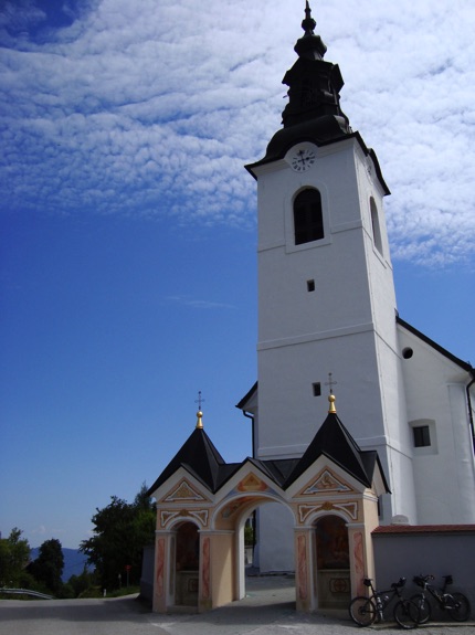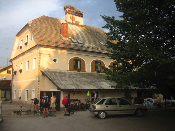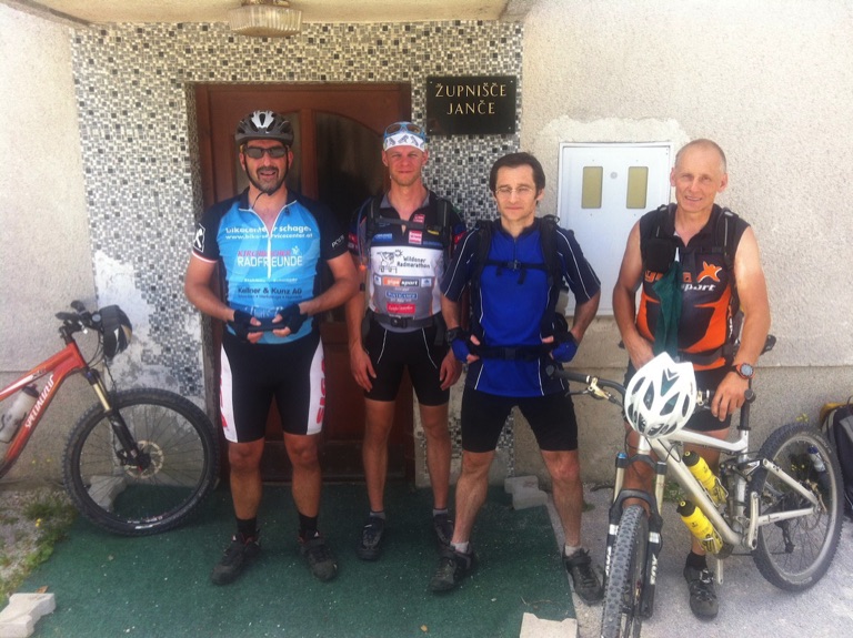 Es ziehen Gewitterwolken auf, ein paar hundert Meter neben uns schlägt mitten im Wald der Blitz ein - so etwas lädt indirekt wieder die Batterien auf, man wird alert... Nach der Kirche beginnt es dann im Wald zu regnen, wir stellen uns kurz unter und rollen dann in leichter Regenadjustierung weiter, doch bald schon kommt wieder der blaue Himmel zum Vorschein. Wir genießen die Fahrt hinüber Richtung Hochmoor, die Stimmung dort ist großartig. Langsam rollen wir hinunter nach Nova Vas und beziehen im Sla Mar Quartier. Die freundlichen Wirtsleute begrüßen uns und ermöglichen eine professionelle Radpflege, danach beziehen wir die liebevoll eingerichteten Zimmer und nehmen wieder einmal den besten Wildschweinbraten wo gibt zu uns. Löblich zu erwähnen sind auch die dazu gereichten Kartoffeln, sowie das berühmte Union Bier vom Fass, welches in durchaus erwähnenswerten Mengen unsere durstigen Kehlen hinunter rinnt.